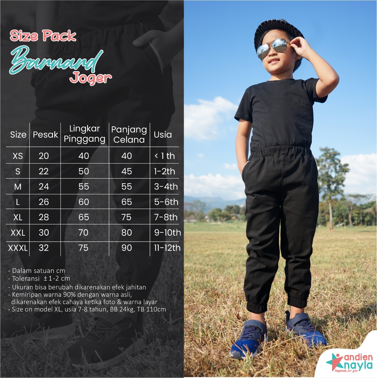 Bagian bawah joger didesain dengan kerutan karet sehingga membuat tampilan si kecil semakin trendy.