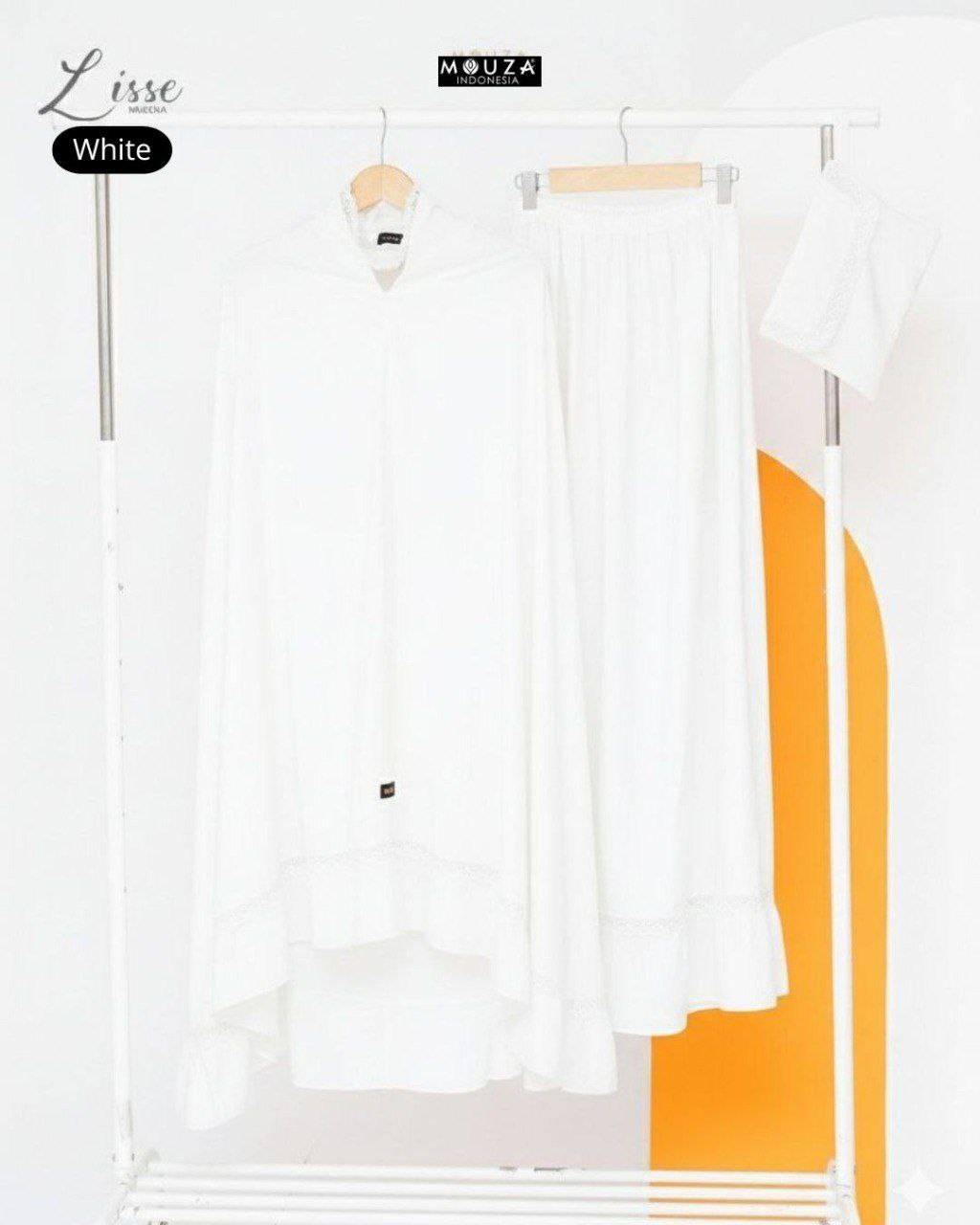 ? Mukena Lisse bermaterial Polycatton Palton yang bertekstur halus, permukaan kain dingin dan lembut, tidak panas serta mudah menyerap keringat.