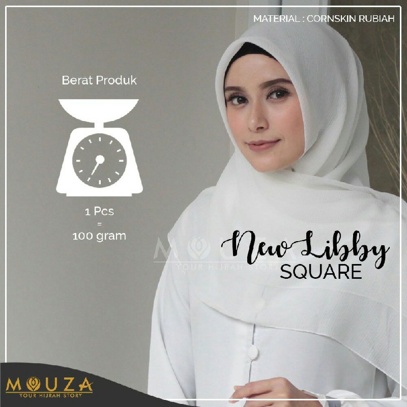 > New Libby Square adalah kerudung segi empat yang berbahan Cornskin Rubiah.