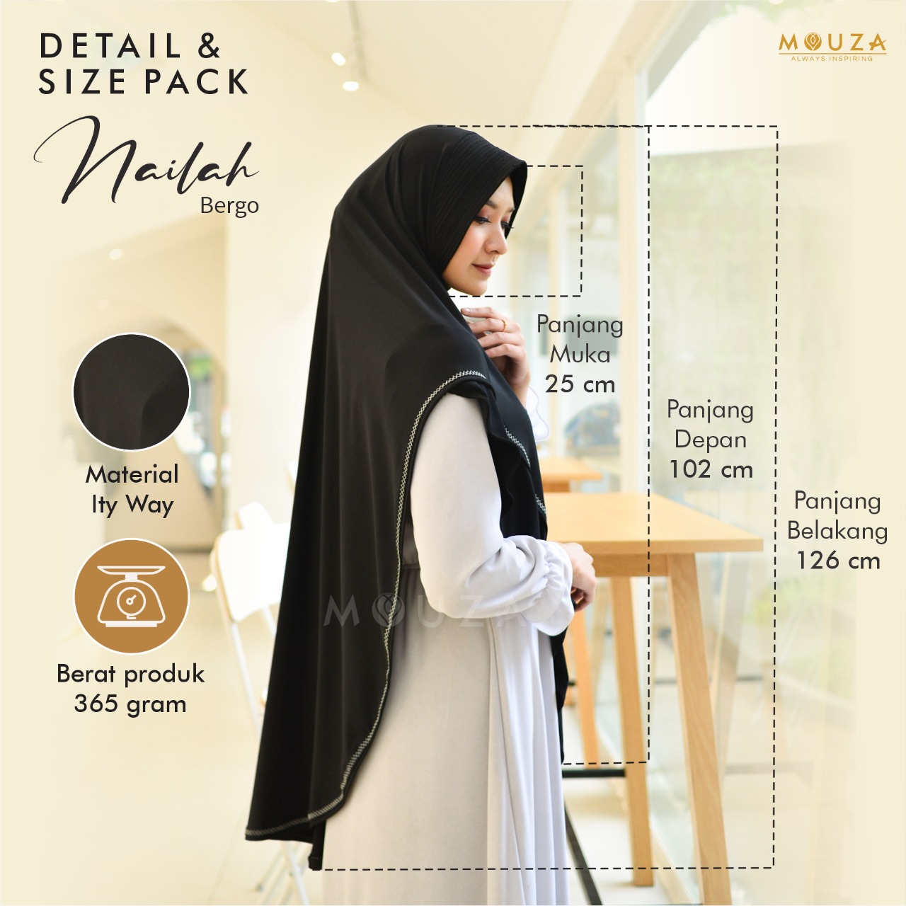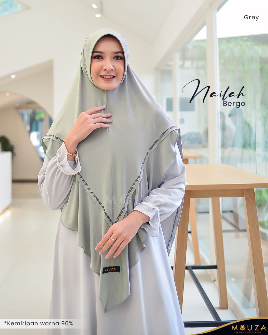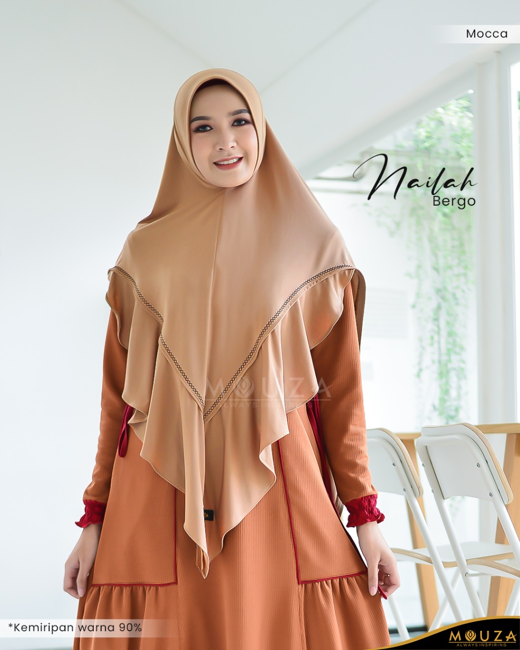 Bergo Nailah bisa dikombinasikan dengan Nailah Dress.