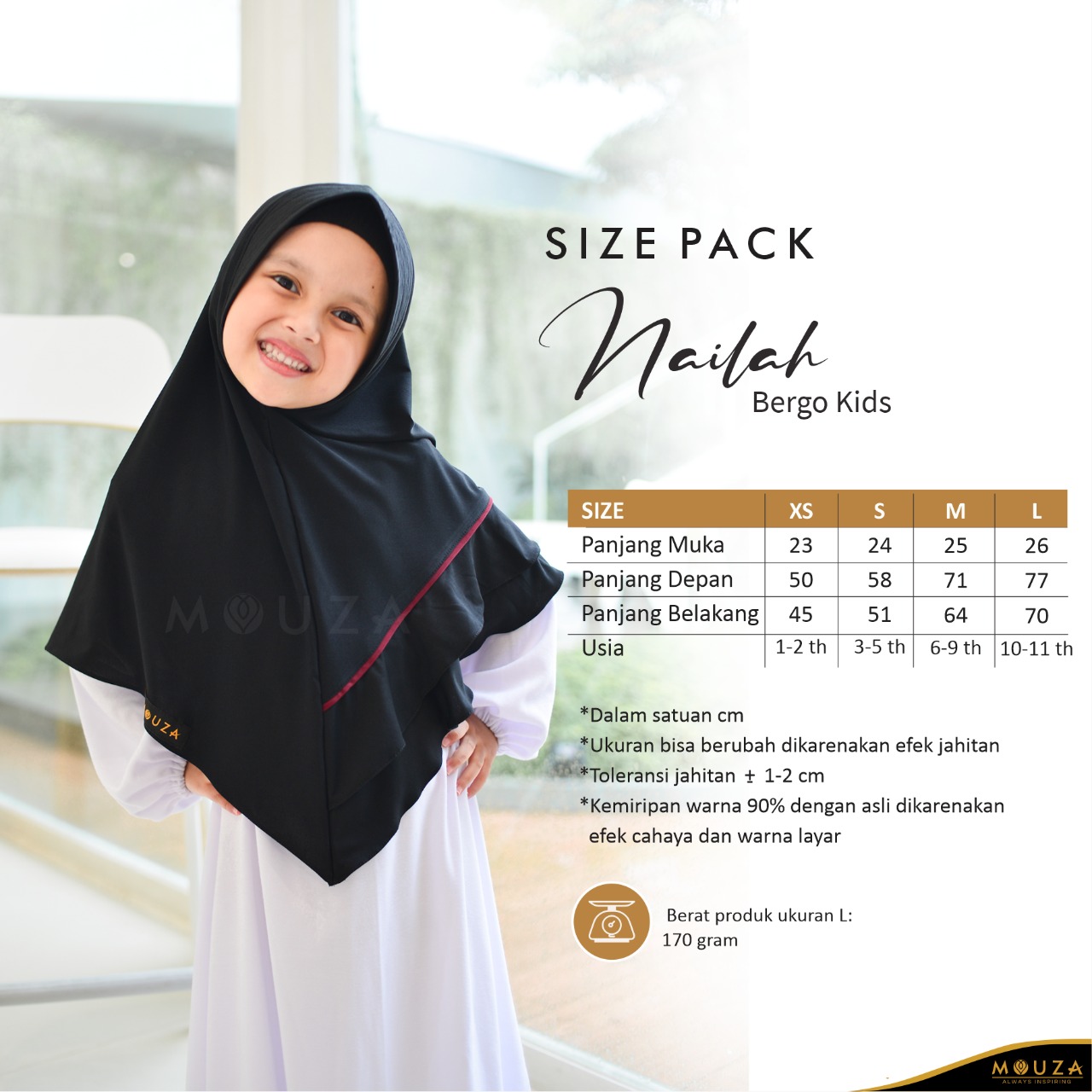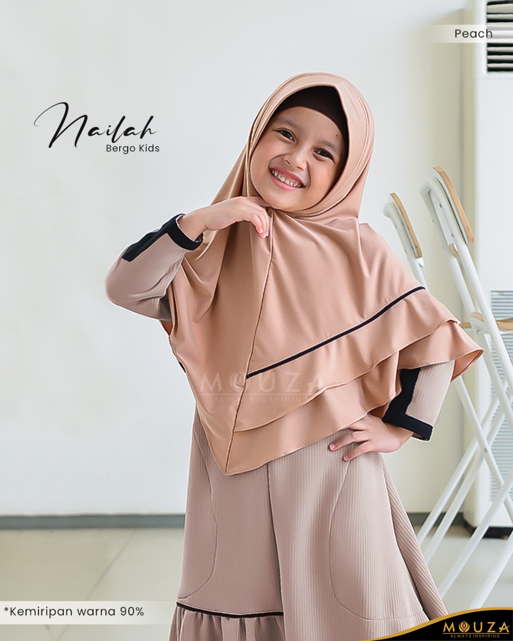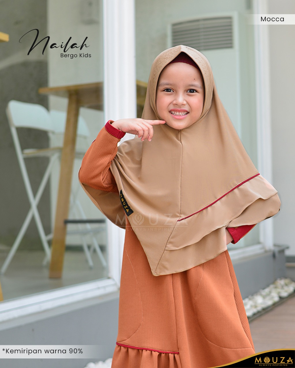 Bergo Nailah Kids bisa dikombinasikan dengan Nailah Dress Kids.