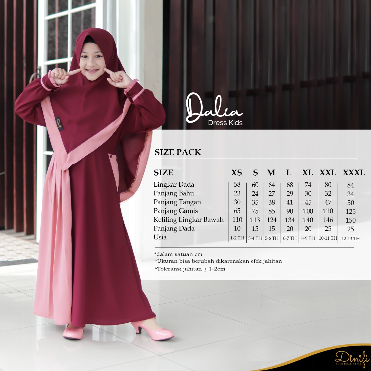 Dalia Dress Kids merupakan dress anak terbaru dari Dinifi, bermaterial Elena Crepe.