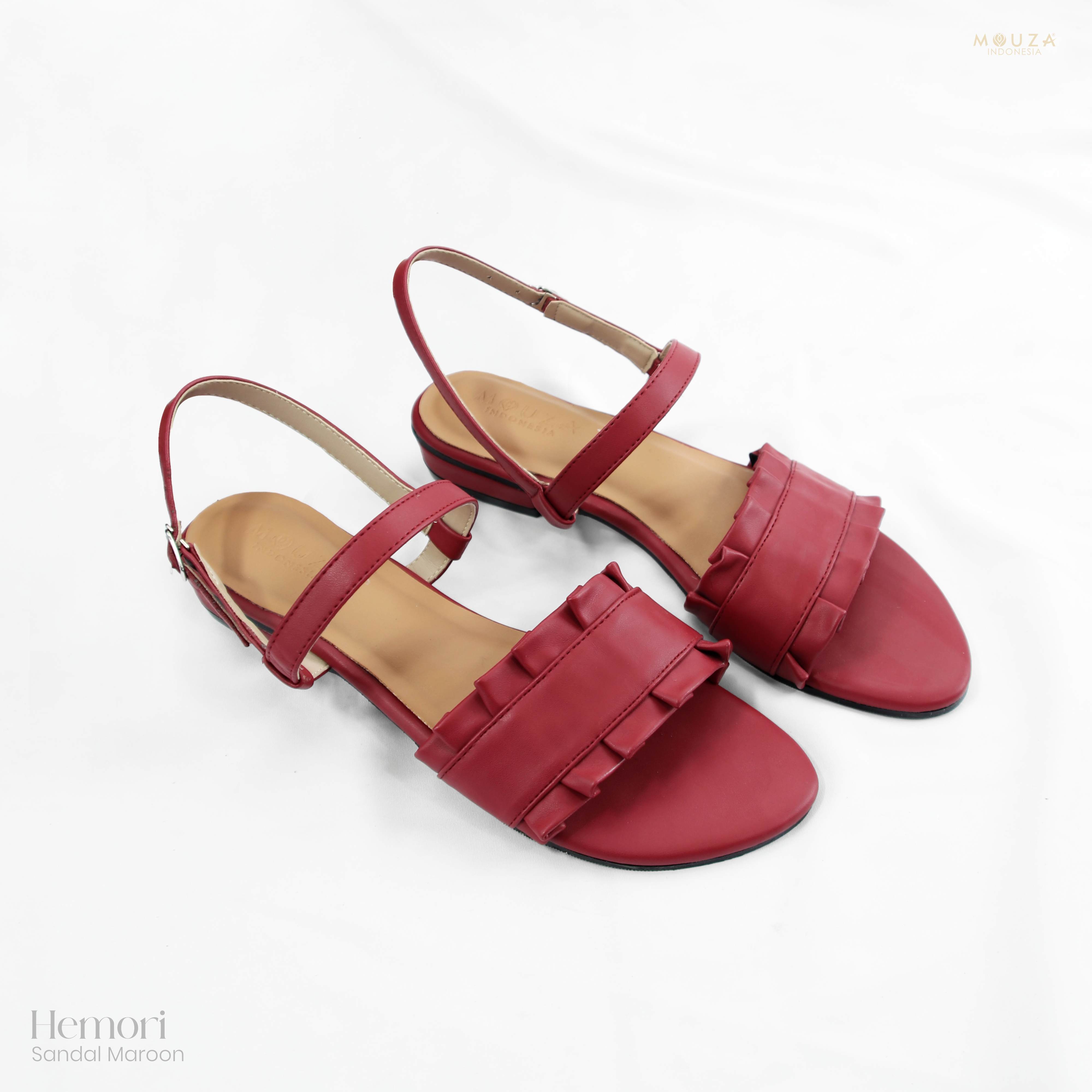 ? Dibuat dengan material leather sintetis sandal empuk, simple dan ringan dengan variasi tali dibagian belakang dan ruffle di bagian depan yang membuat sandal ini semakin cantik.