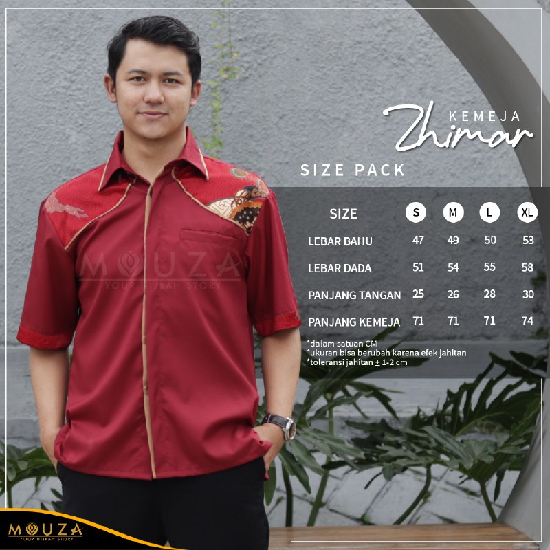 - Zhimar merupakan produk Kemeja Formal lengan pendek terbaru dari Mouza Indonesia, bermaterial Katun Ima Super (polos) yang di mix dengan Saten Peach (motif) dan tambahan list menggunakan Roberto Cavali.