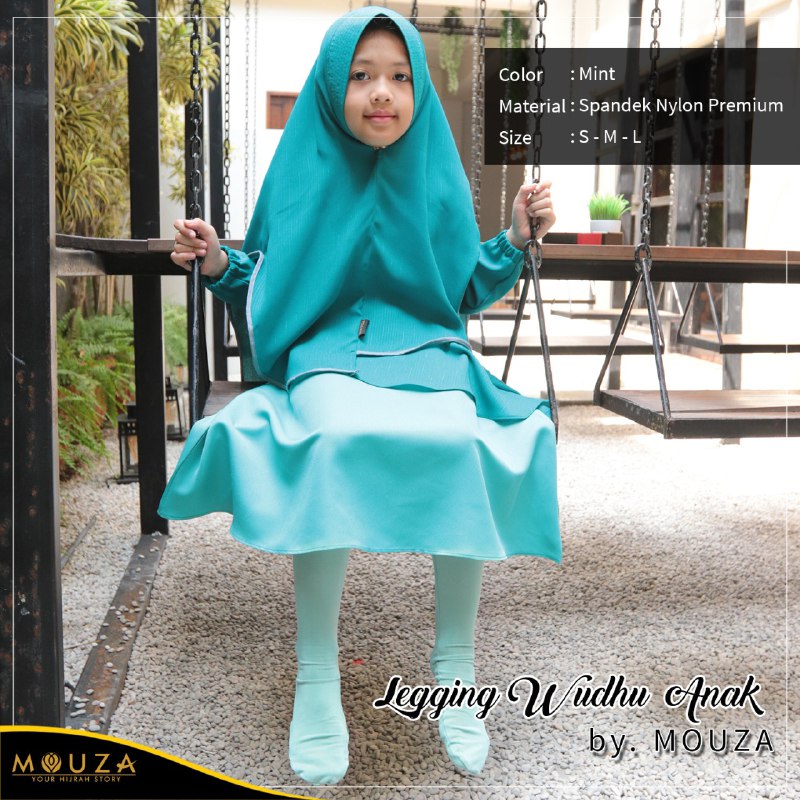 - Pertama kalinya Mouza mengeluarkan produk legging wudhu untuk anak. Legging ini recommended banget untuk sikecil yang aktif dan sering bepergian keluar rumah serta memudahkan untuk menutup aurat hingga ujung kaki dan tidak perlu repot buka pasang kaos kaki lagi.