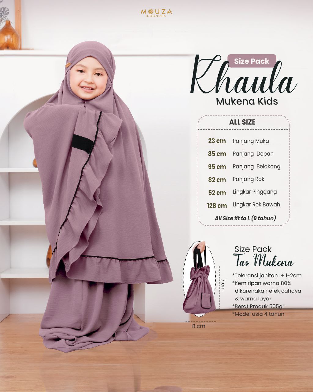 Mukena Khaula Kids merupakan produk Mukena terbaru dari Mouza.