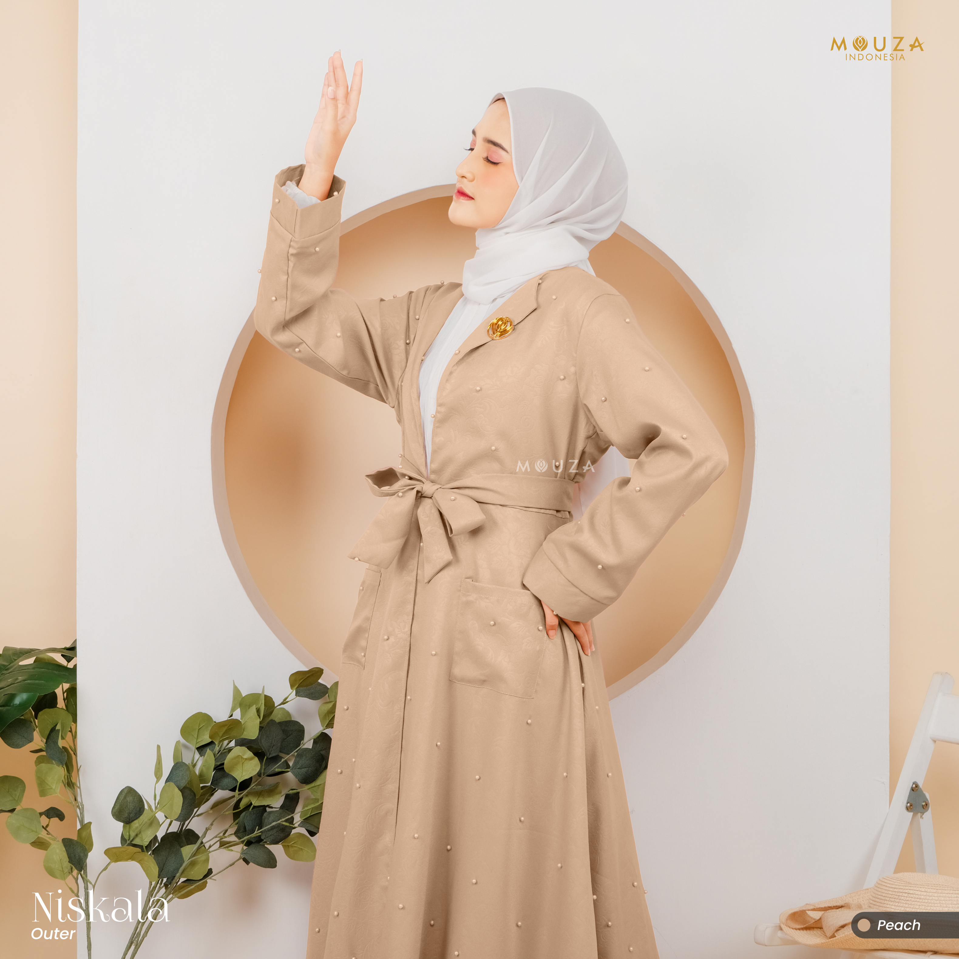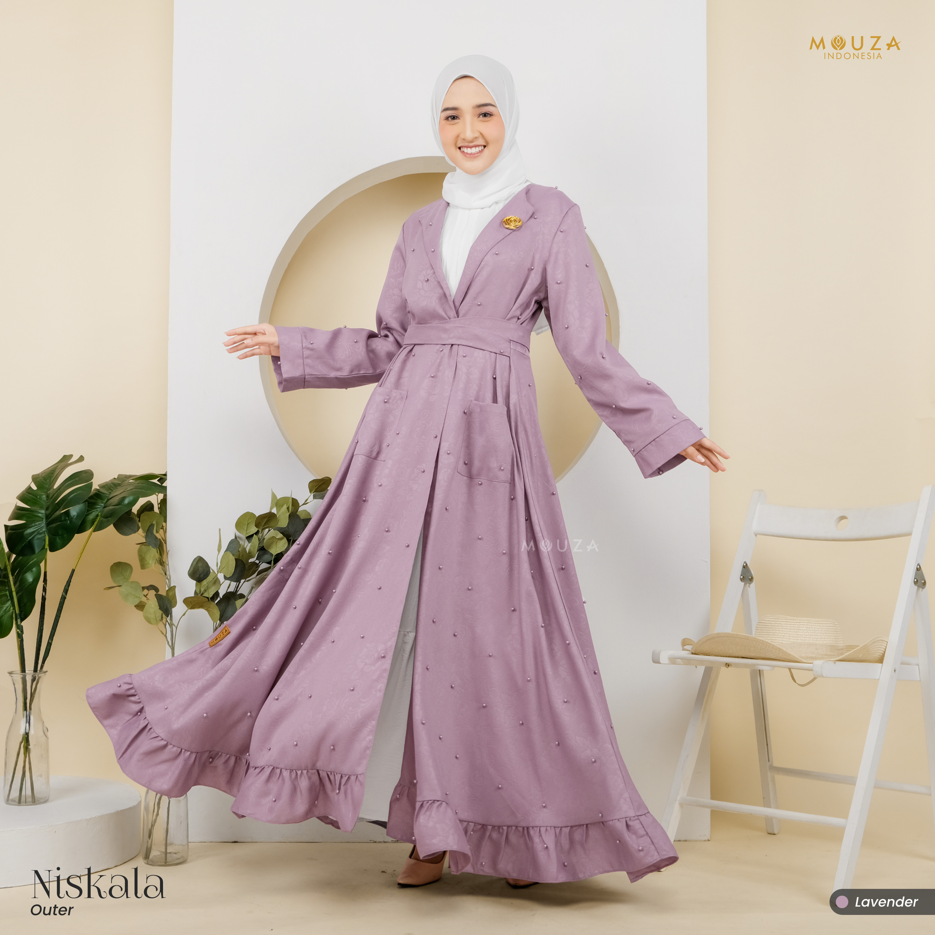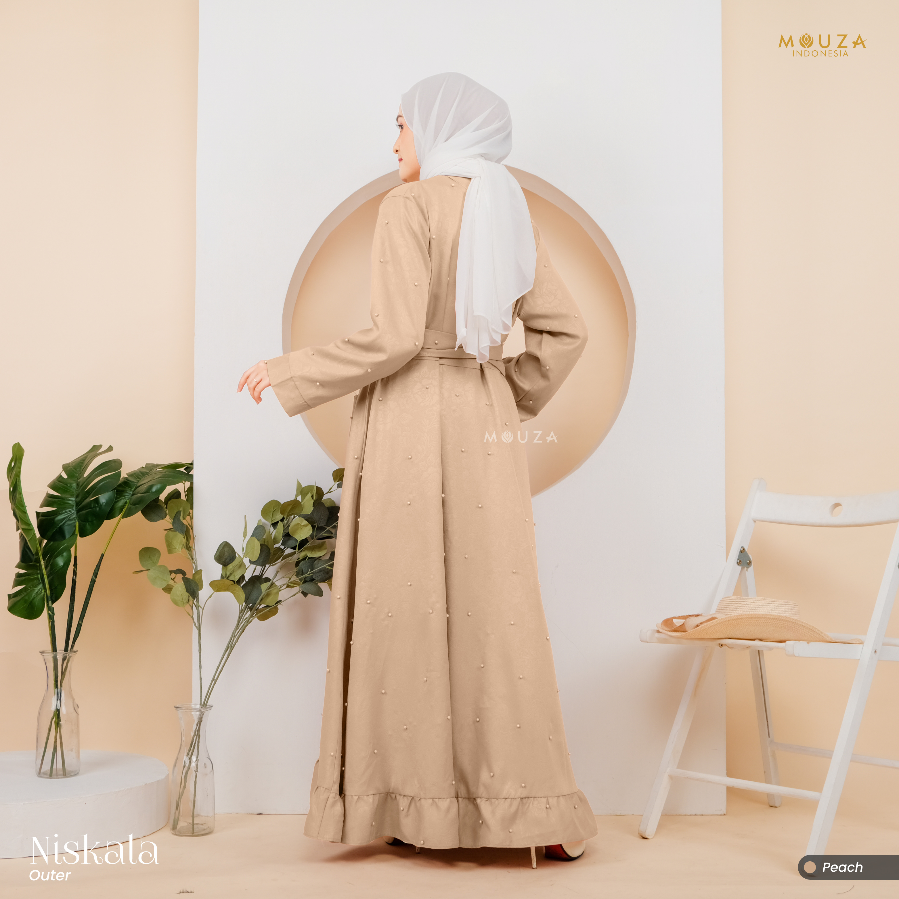 ? Menggunakan material Mosecrepe Embos Mutiara dengan karakteristik bahan yang lentur, nyaman, sangat mudah disetrika, mengkilap dan terkesan elegan dengan tambahan variasi mutiara yang dipadukan dengan brukat Vanci Gliter yang membuat outer ini tampak lebih mewah.