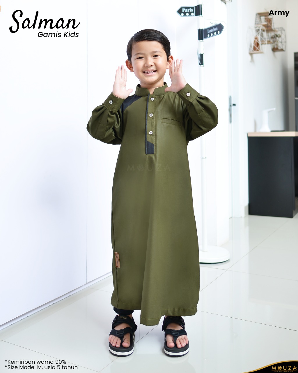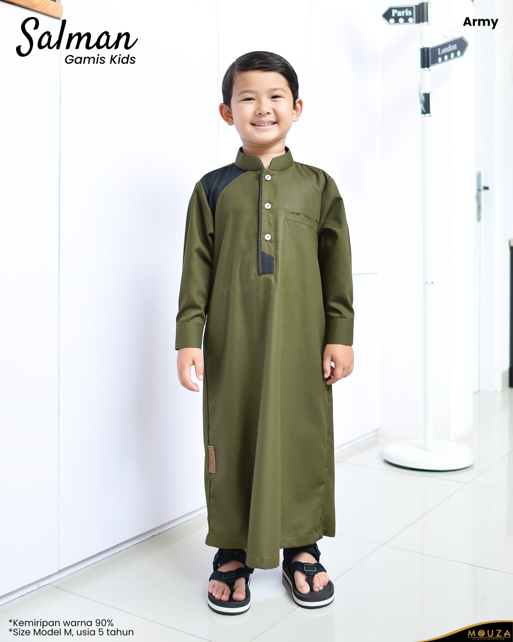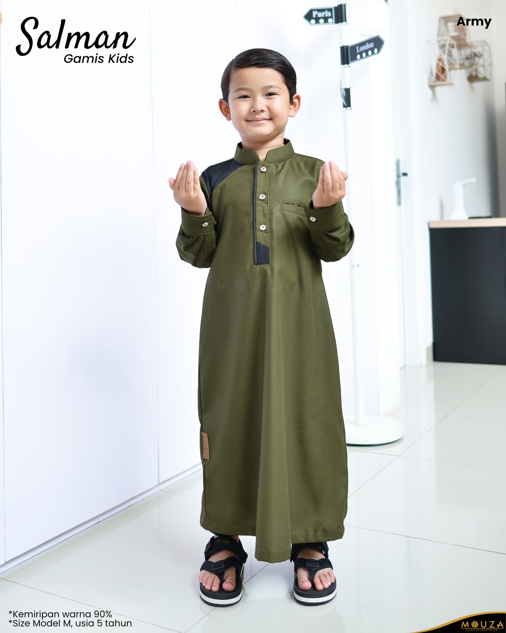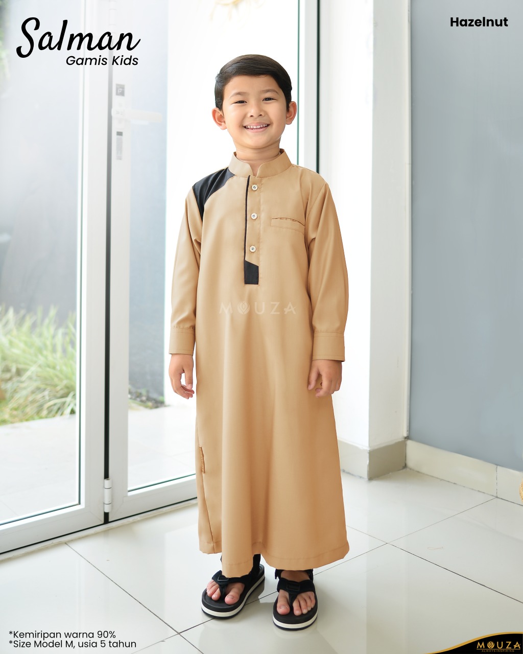 Terdapat kancing dengan variasi list di bagian depan gamis untuk memudahkan pemakaian.