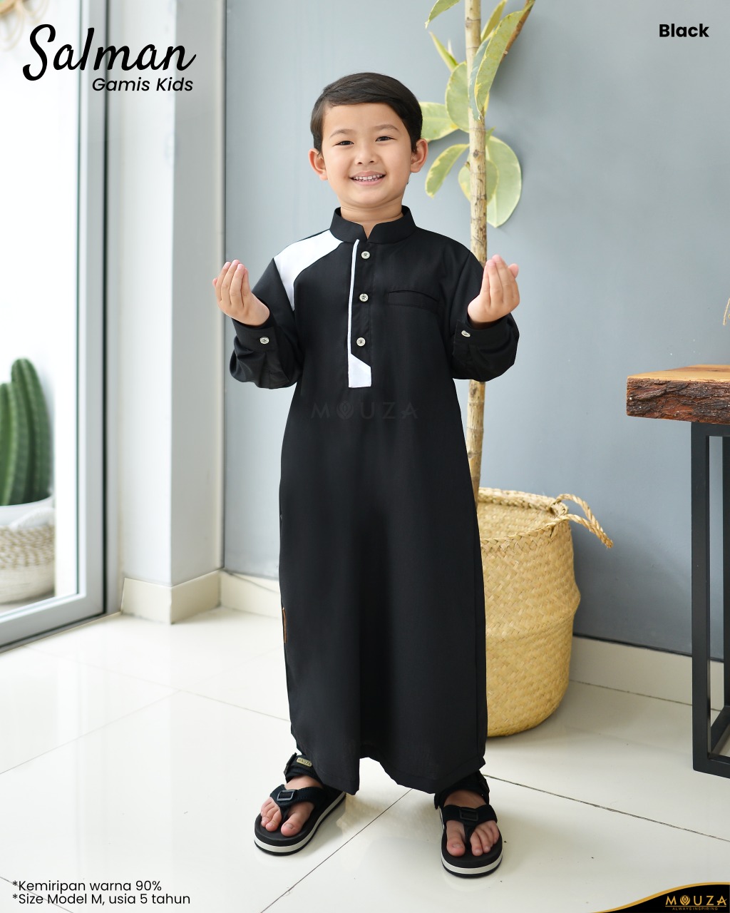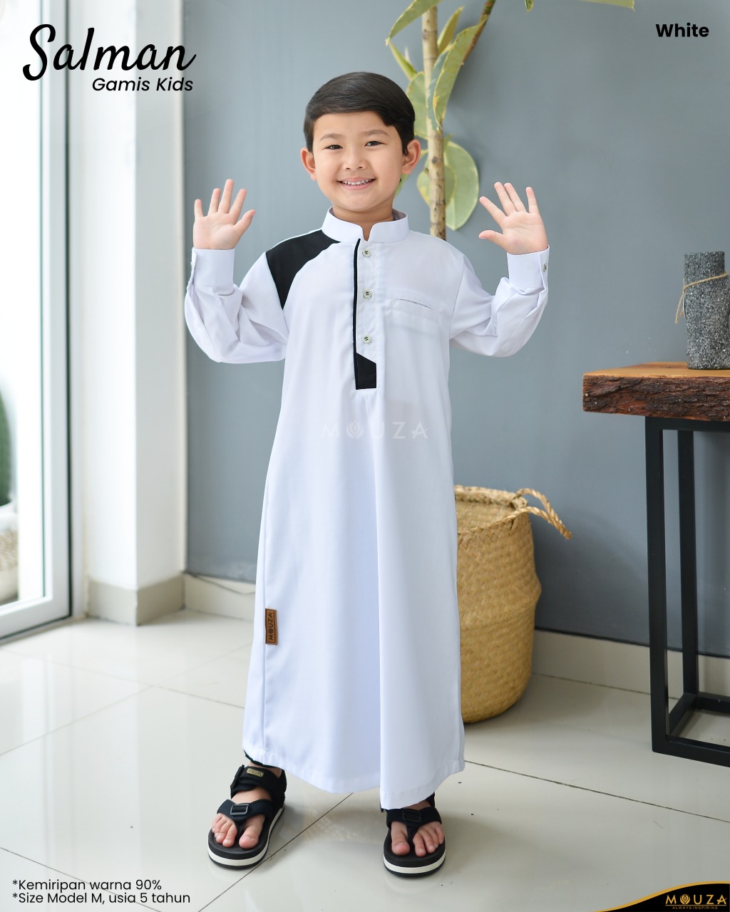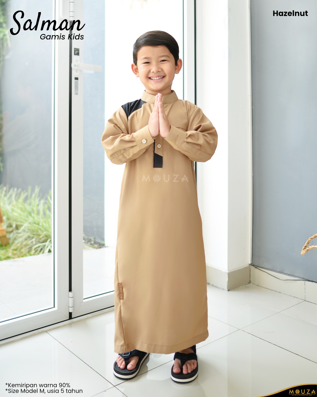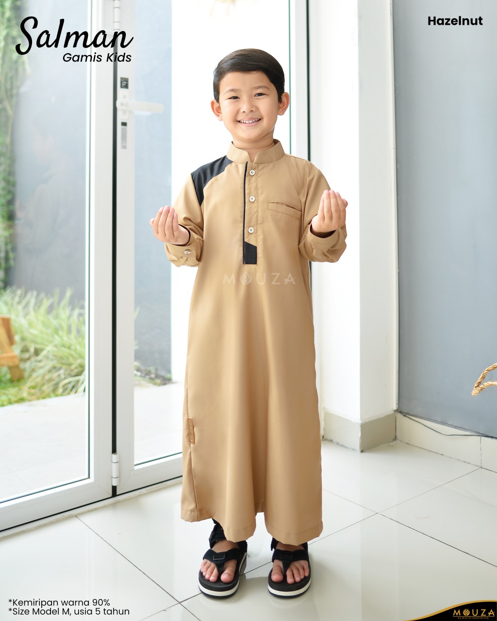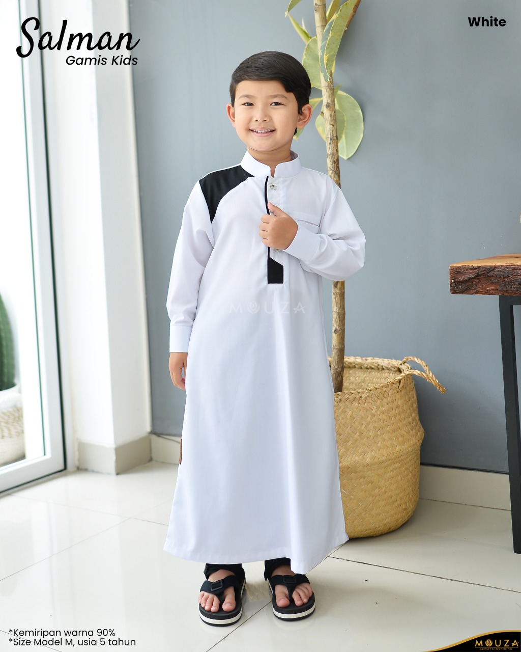 Terdapat kancing dengan variasi list di bagian depan gamis untuk memudahkan pemakaian.