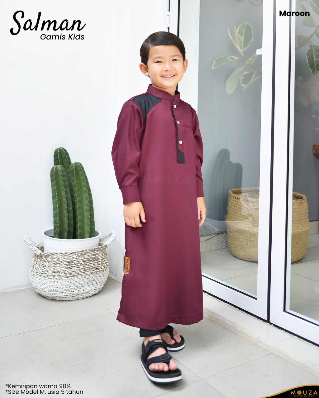 Variasi beda warna di bagian bahu sebelah kanan membuat gamis ini tampak lebih keren.