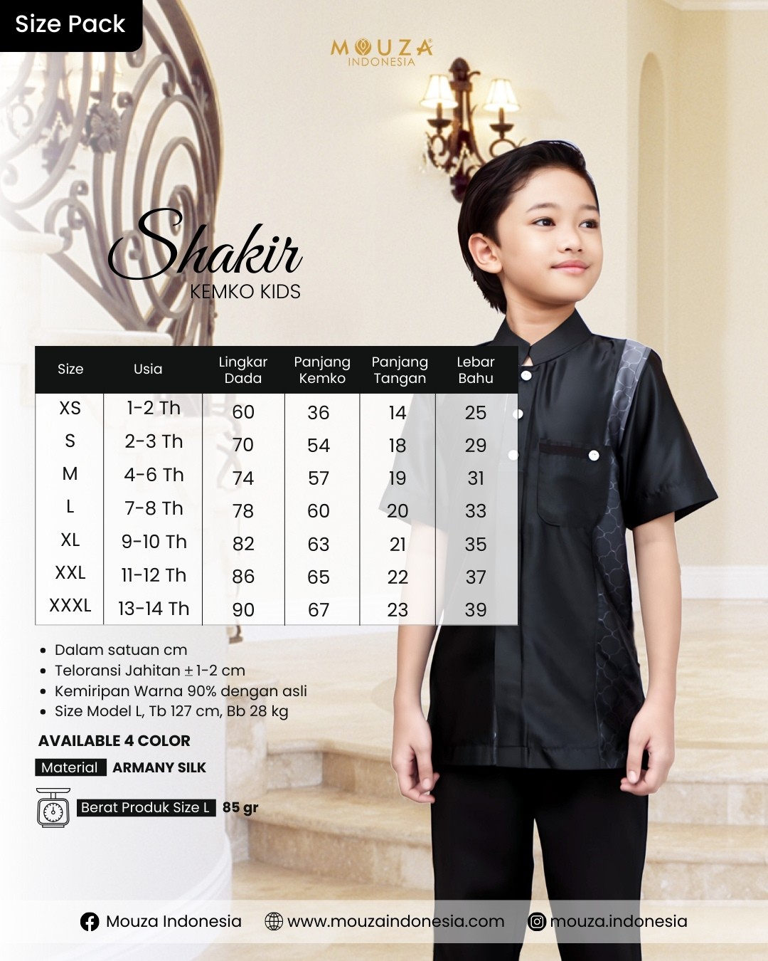 - Shakir Kemko dibuat dengan material Armani Silk (Printing) dan Armani Polos