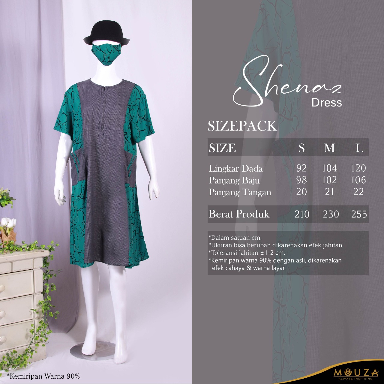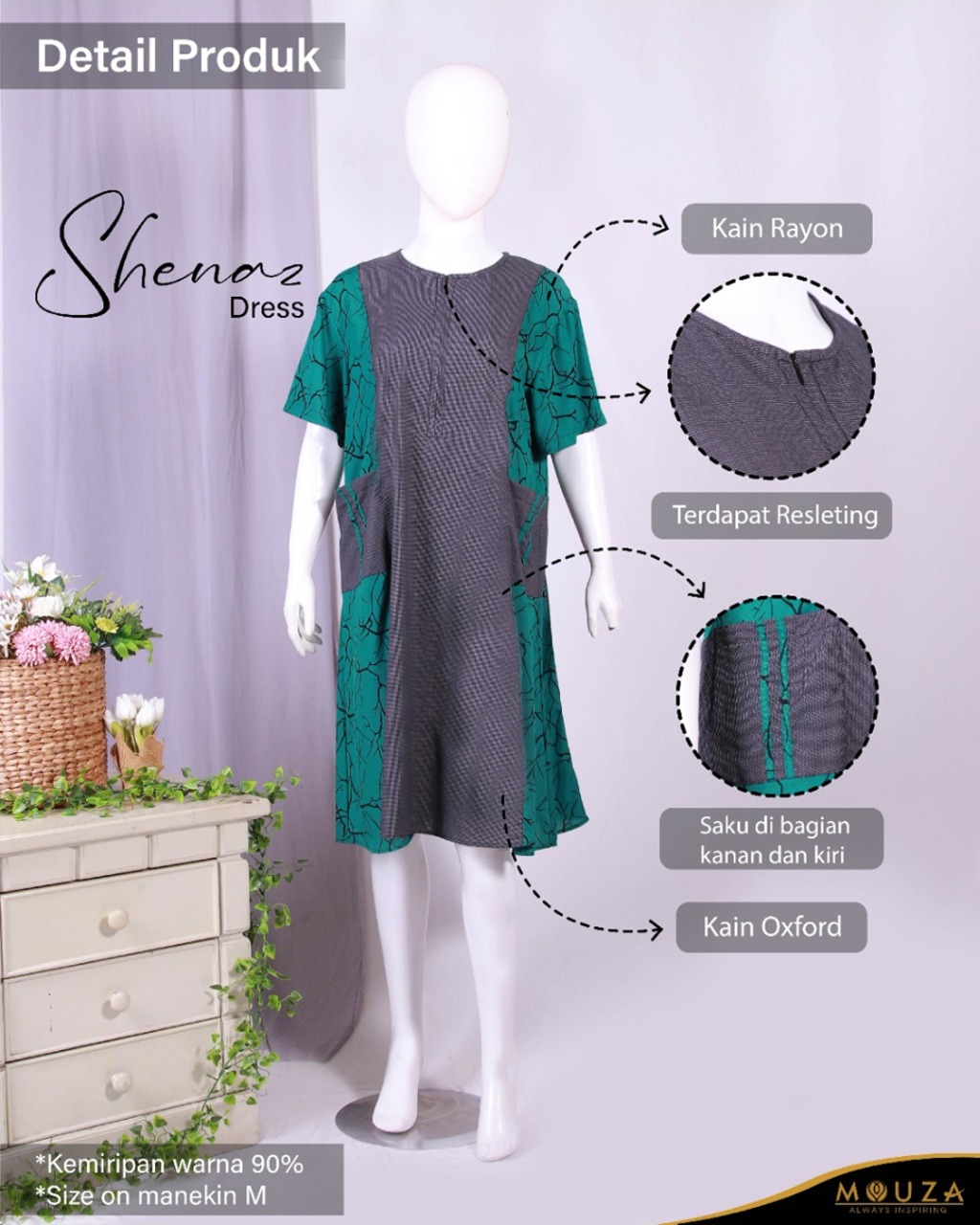 Shenaz dress merupakan dress pendek dari Mouza bermaterial Oxford (grid) dan Rayon (motif root)